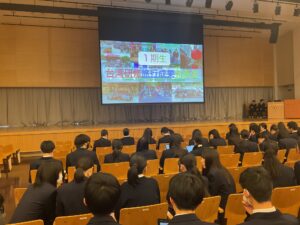 中3生は11月に5日間の台湾研修旅行に行っており、今回は研修旅行で学んだことを各班ごとに発表しました。